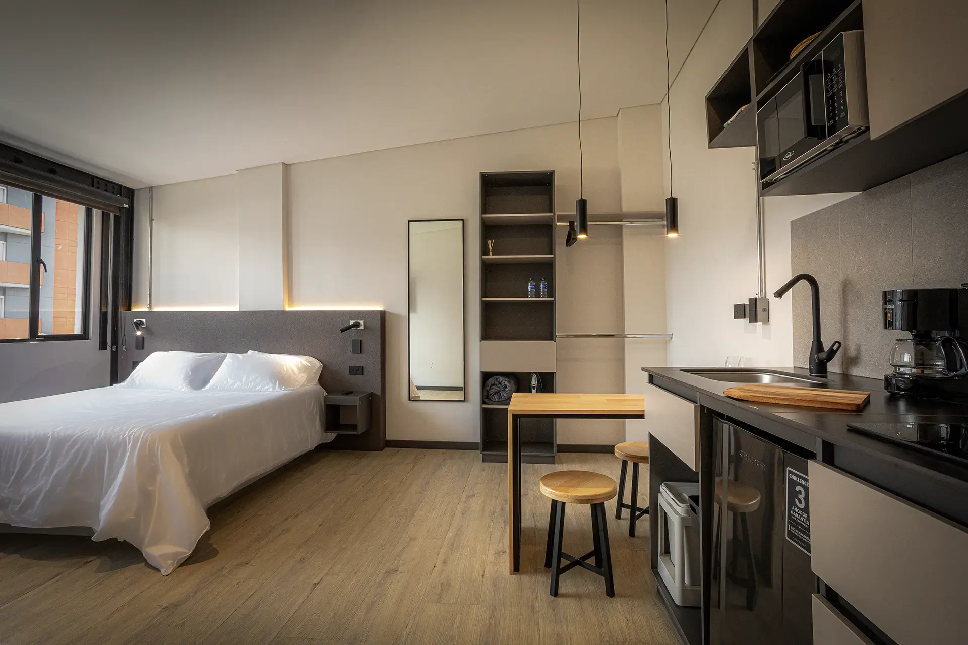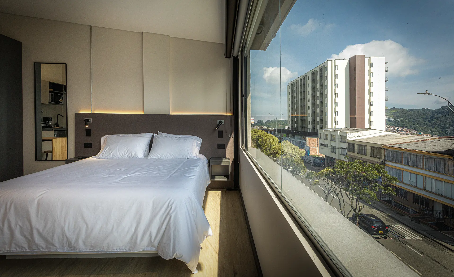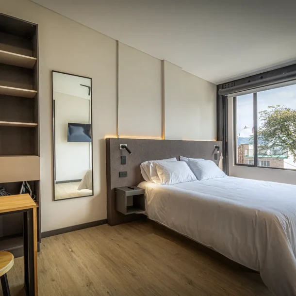 Break Estudios Manizales es un concepto de hospedaje moderno compuesto por habitaciones tipo estudio, diseñadas para ofrecer comodidad, funcionalidad e independencia en un solo espacio. Cada estudio integra área de descanso y servicios pensados para estancias cortas o prolongadas en la ciudad.